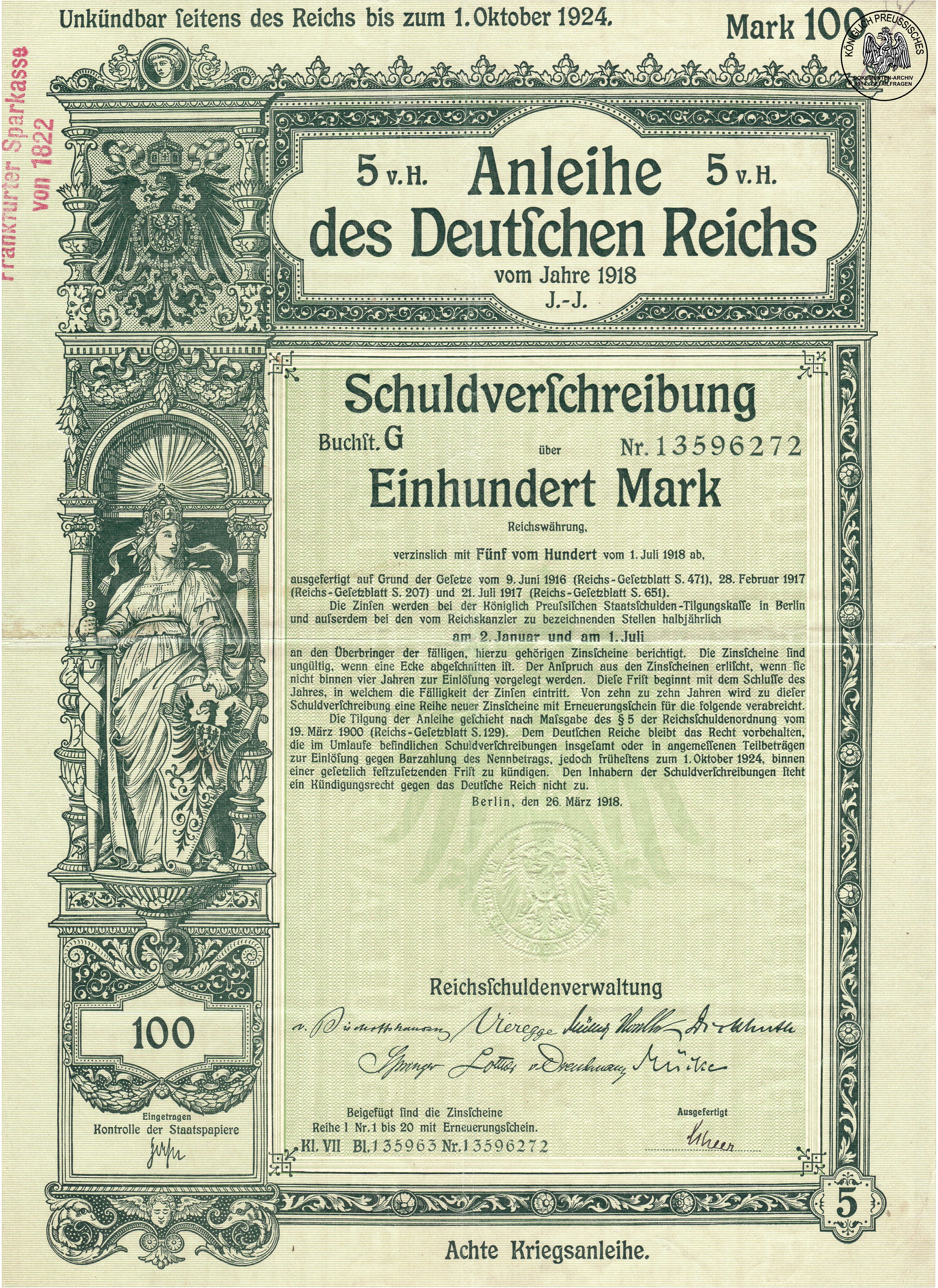 AnleiheDeutsches Reich100M, 5%8. Kriegsanleihe |