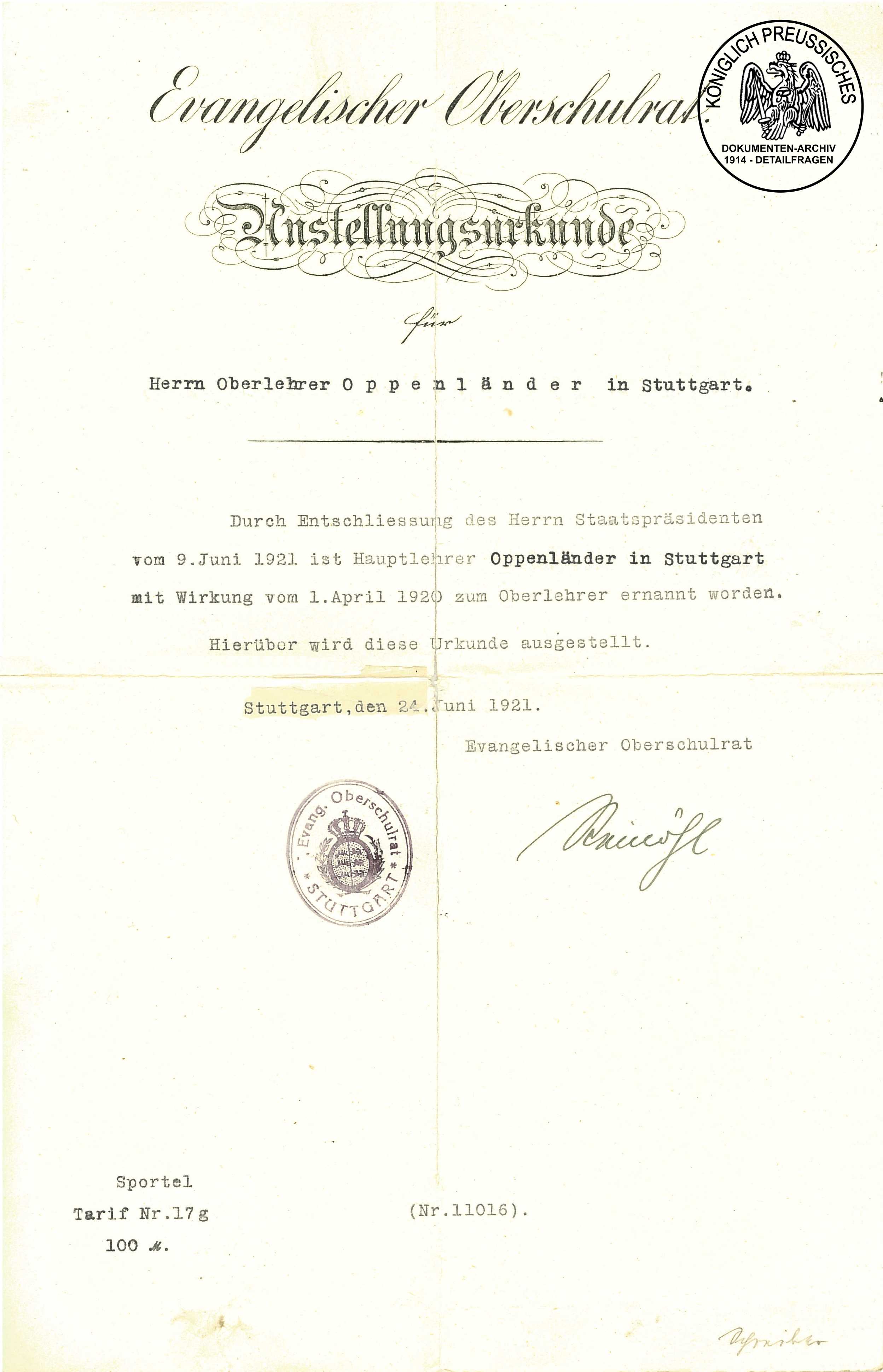 Bestallung für Herrmann Schmandt aus Hechingen zum Landmesser. Bei dem Dokument handelt es sich um eine Abschrift; die eigentliche Bestallung erfolgte am 30.11.1908 in Berlin. |