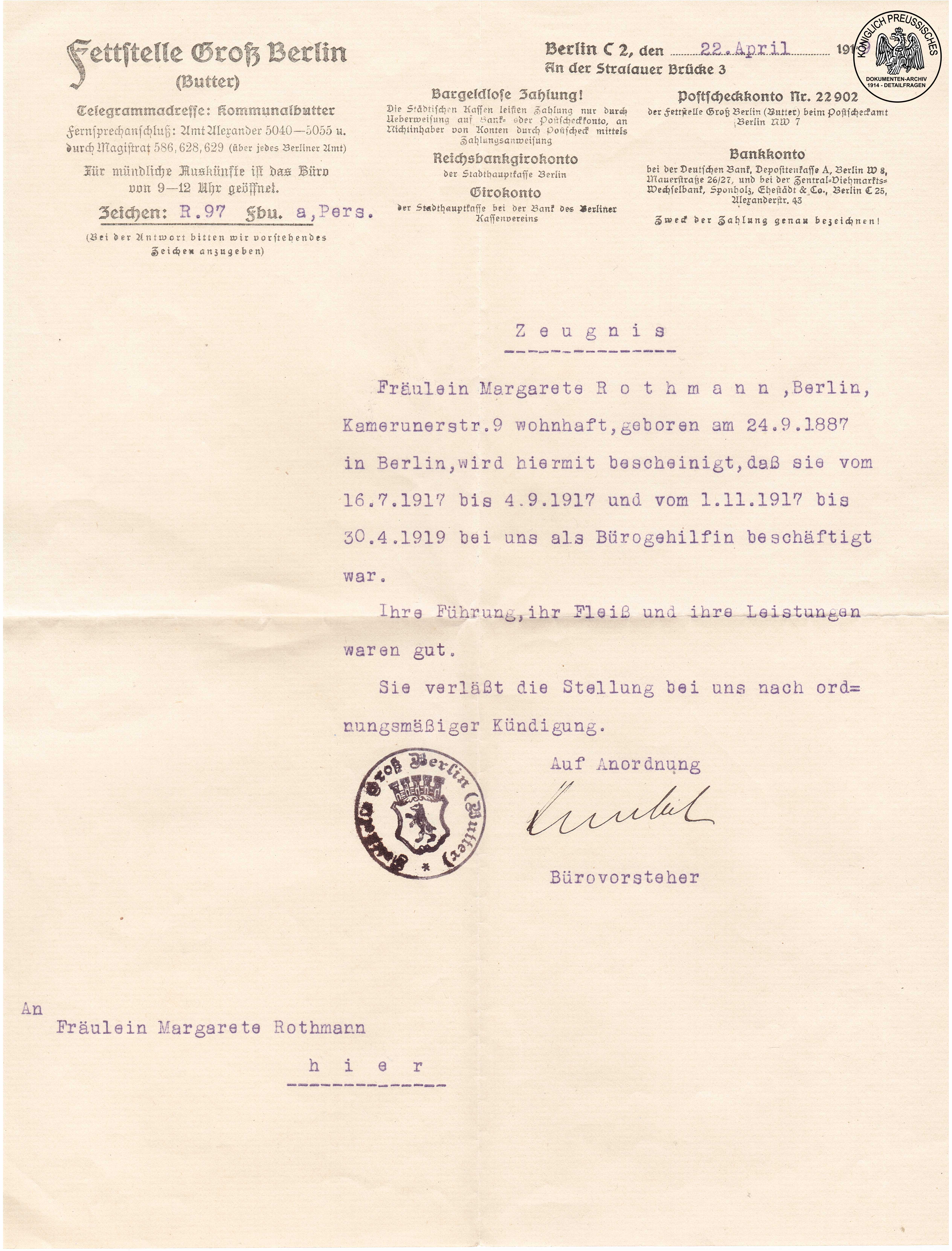 Nachweiskarte für Charlotte Verls des Arbeitsnachweisamtes