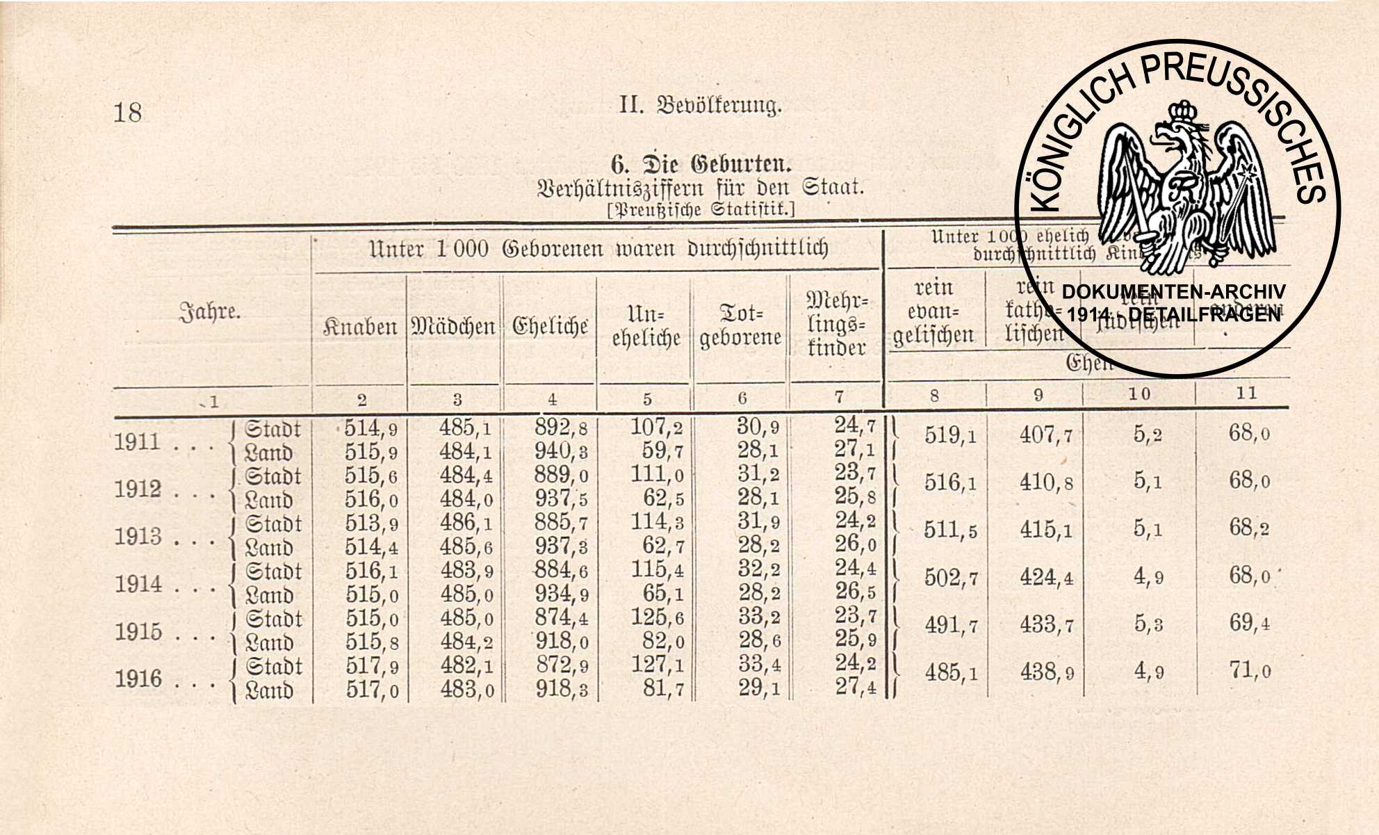 StatistikPreussenII. BevölkerungB. BewegungGeburtenVerhältnisseJB1918 |
