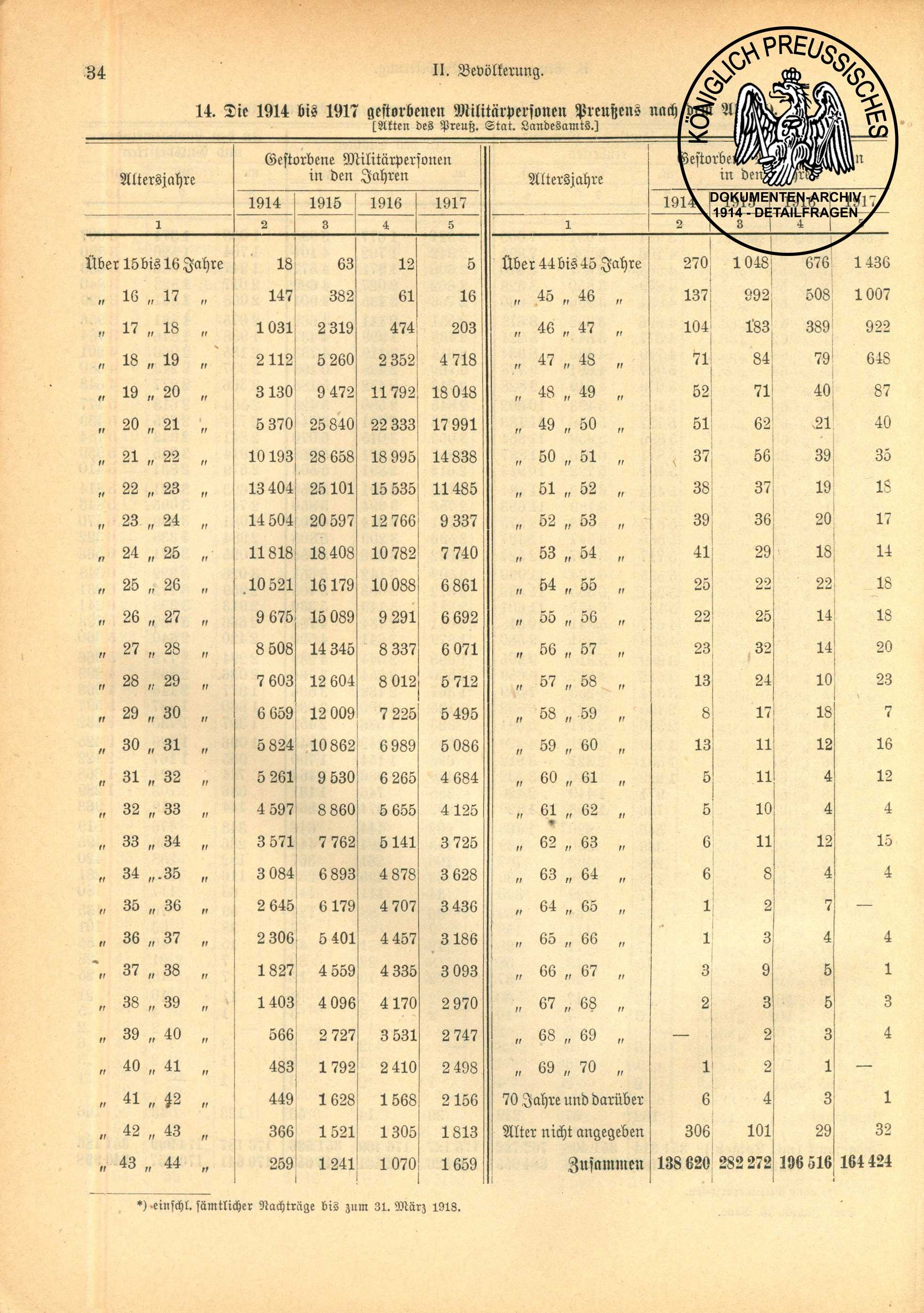 StatistikFreistaatPreussenII. BevölkerungB. Bewegung derBevölkerungSterbefälleMilitärpersonen |