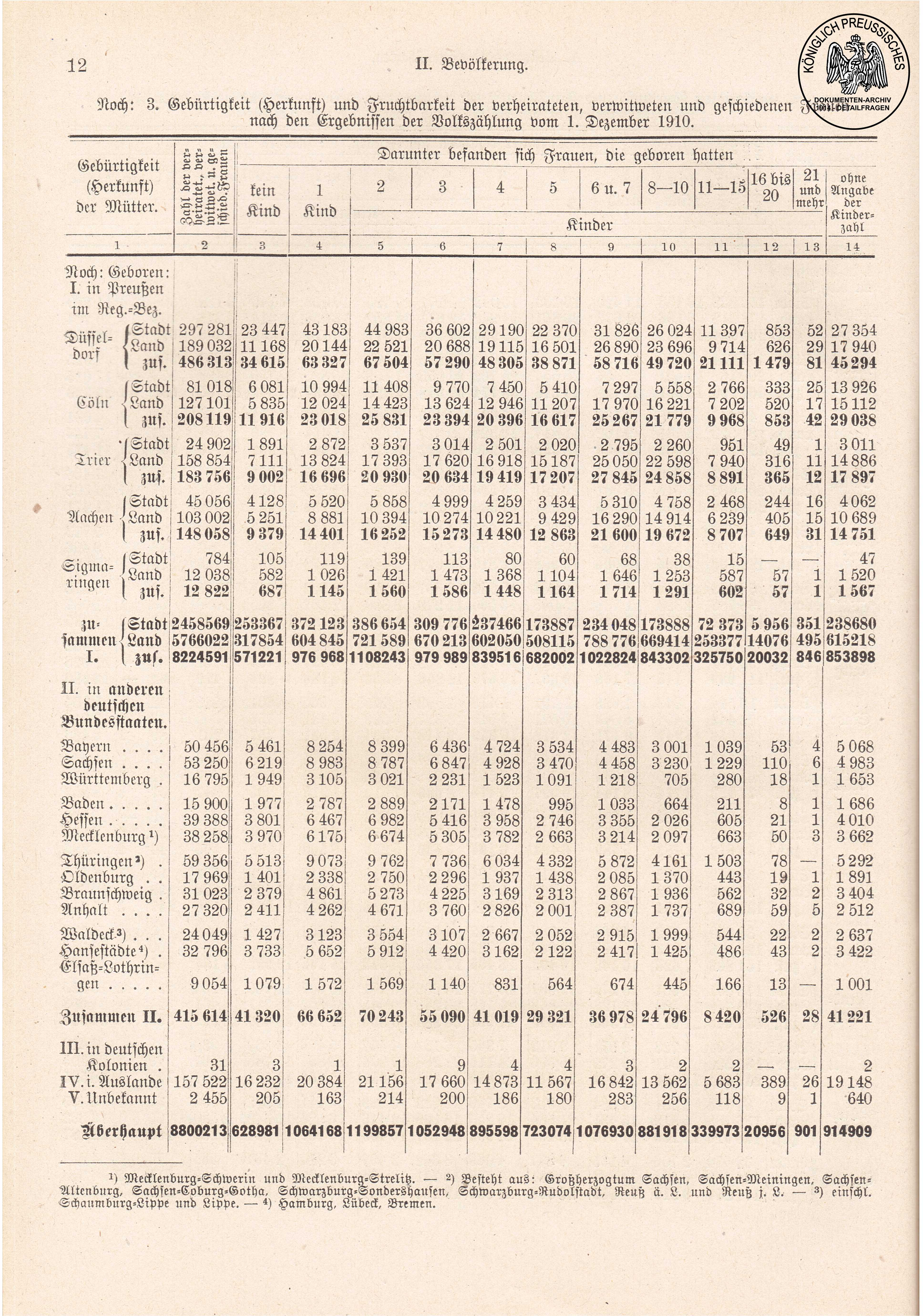 StatistikPreussenII. BevölkerungFruchtbarkeitder Frauen |