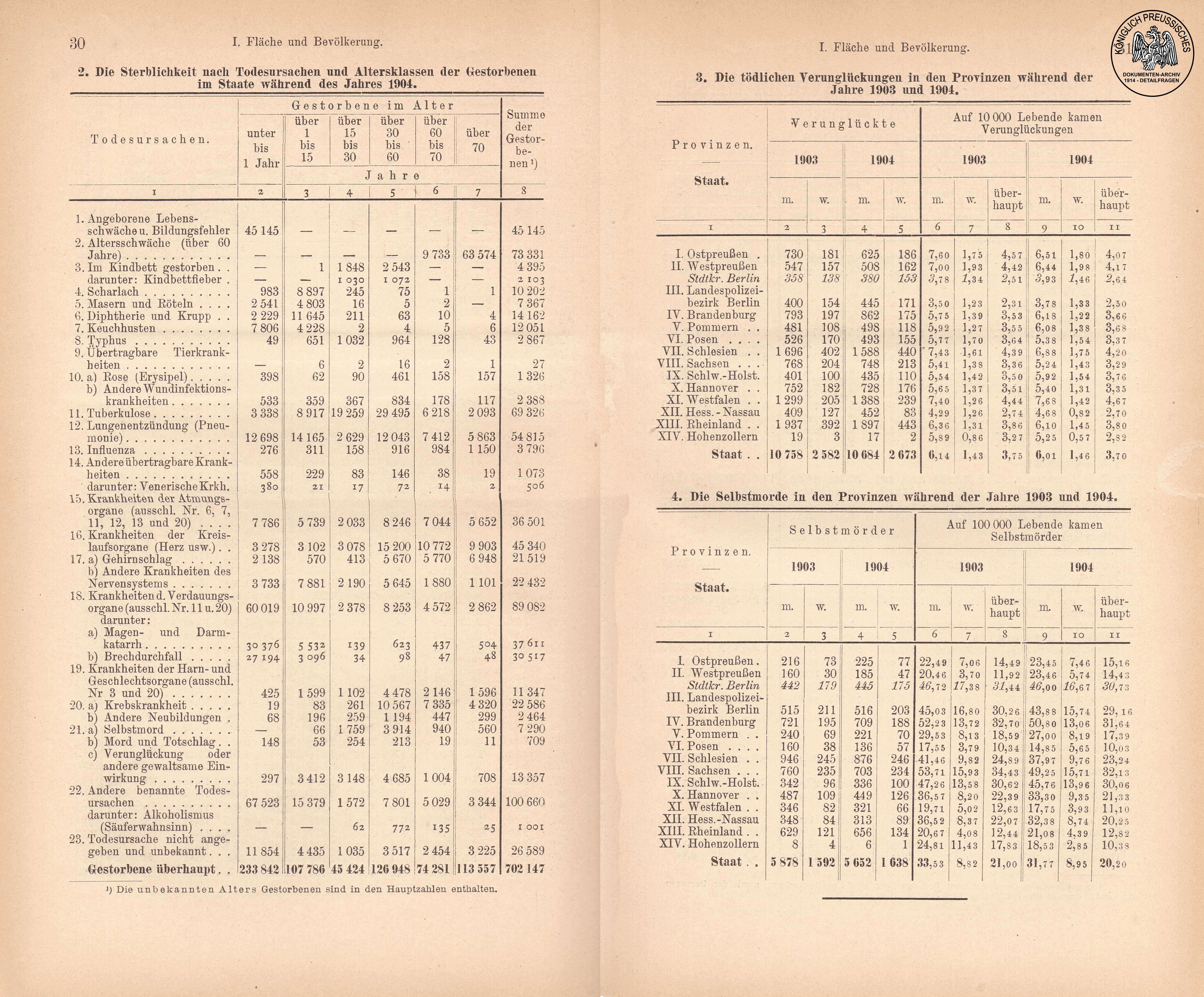 StatistikFreistaatPreussenII. BevölkerungC. Todesursachenwichtige TodesursachenAltersklassen |