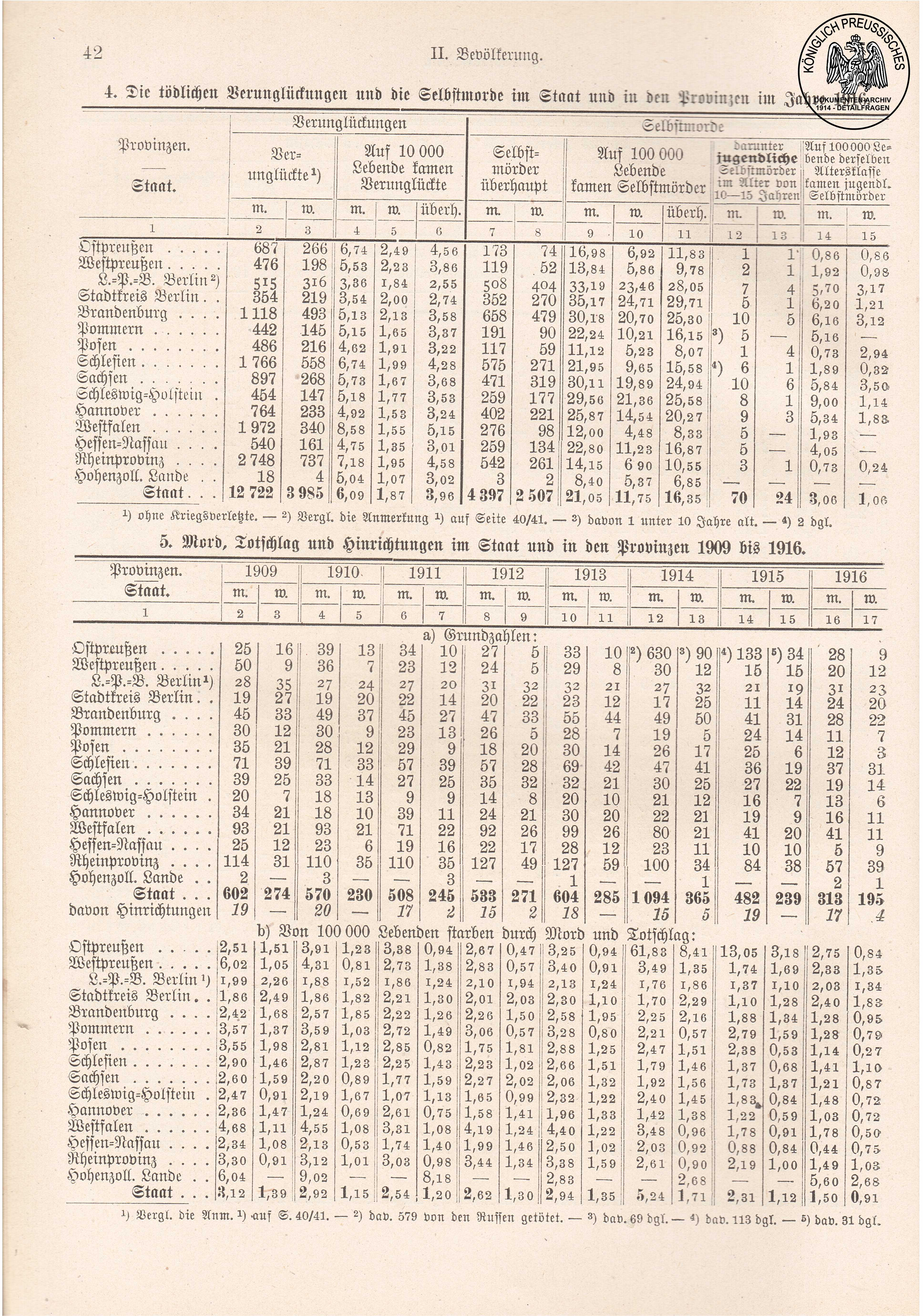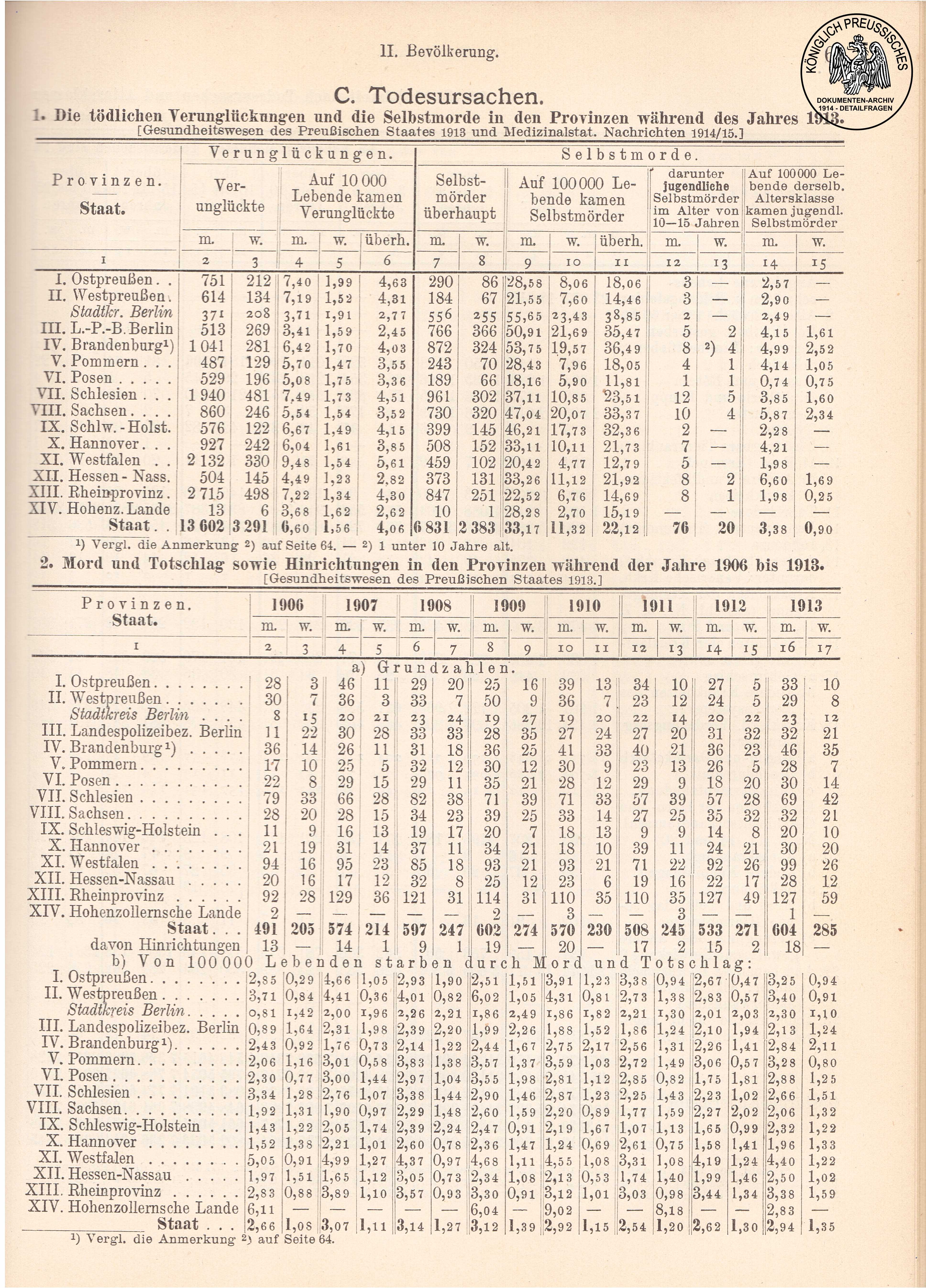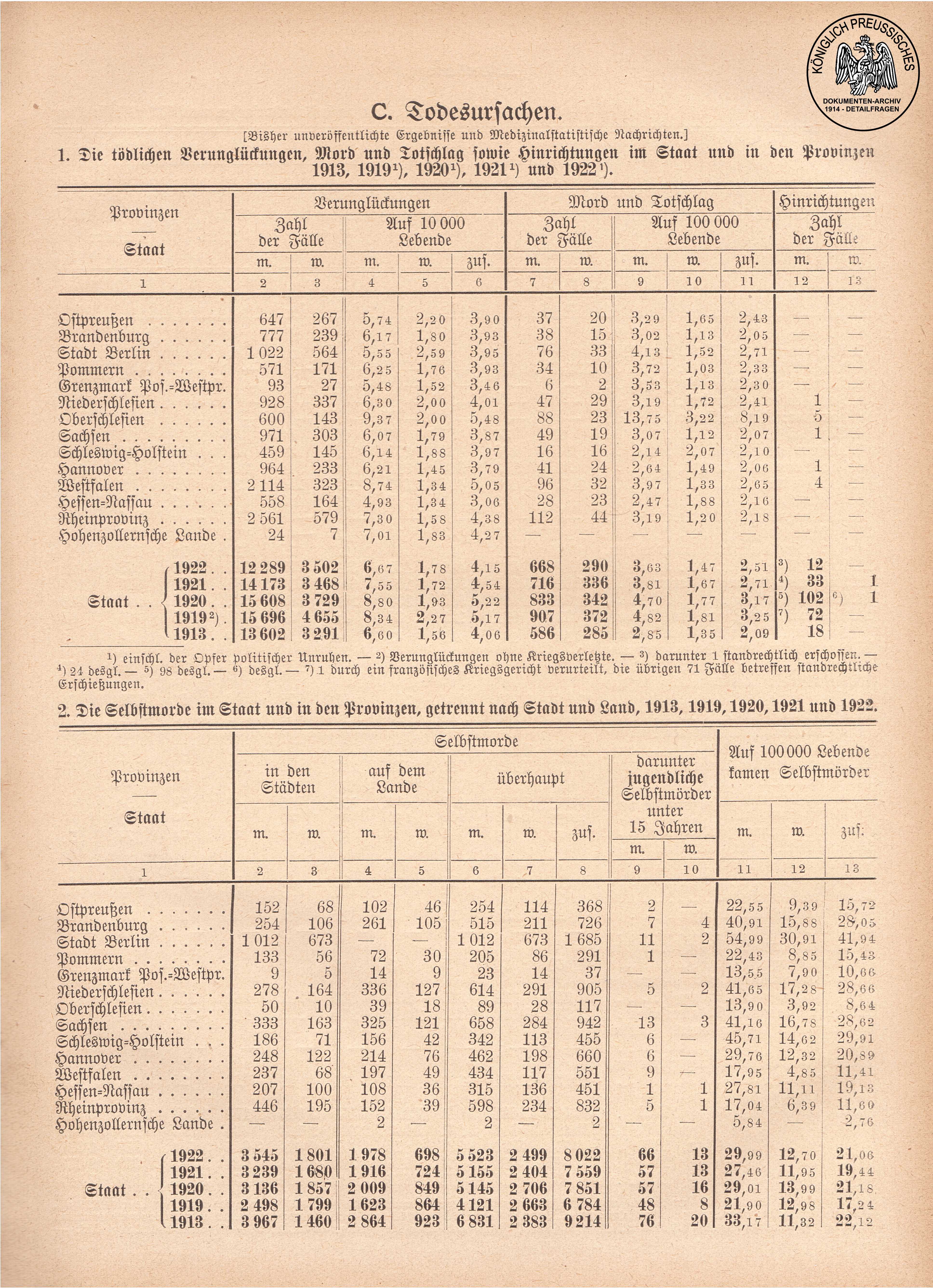 StatistikFreistaatPreussenII. BevölkerungC. TodesursachenSelbstmordMord & Totschlag |