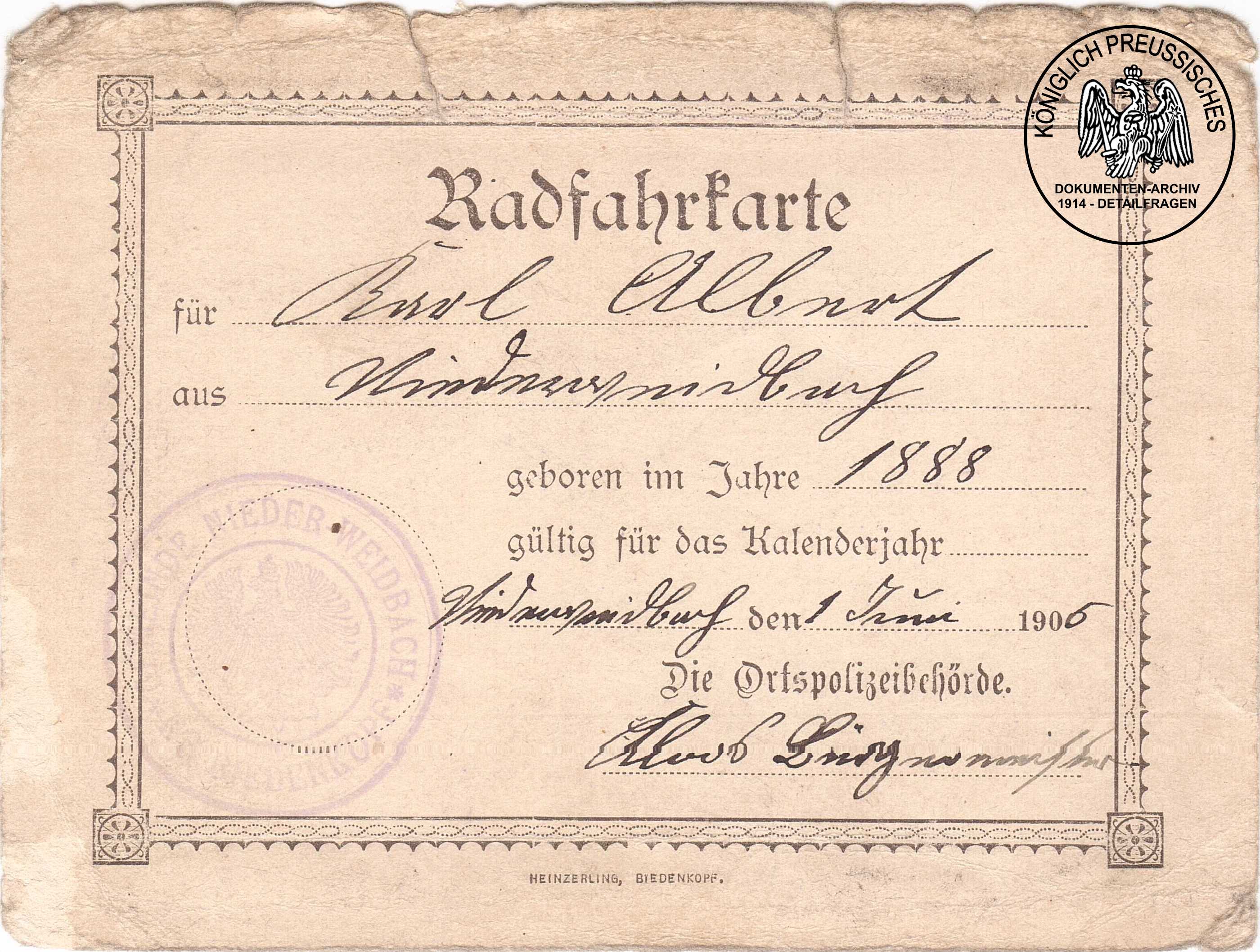 RadfahrkartePreussenKarl Albert |