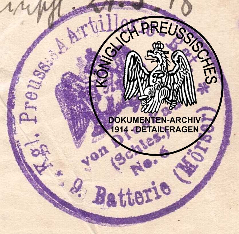 Siegel der Koeniglich Preussische Kassenverwaltung der II AbteilungRes. FeldartillerieRegiment No 7(aus einem Soldbuch) |