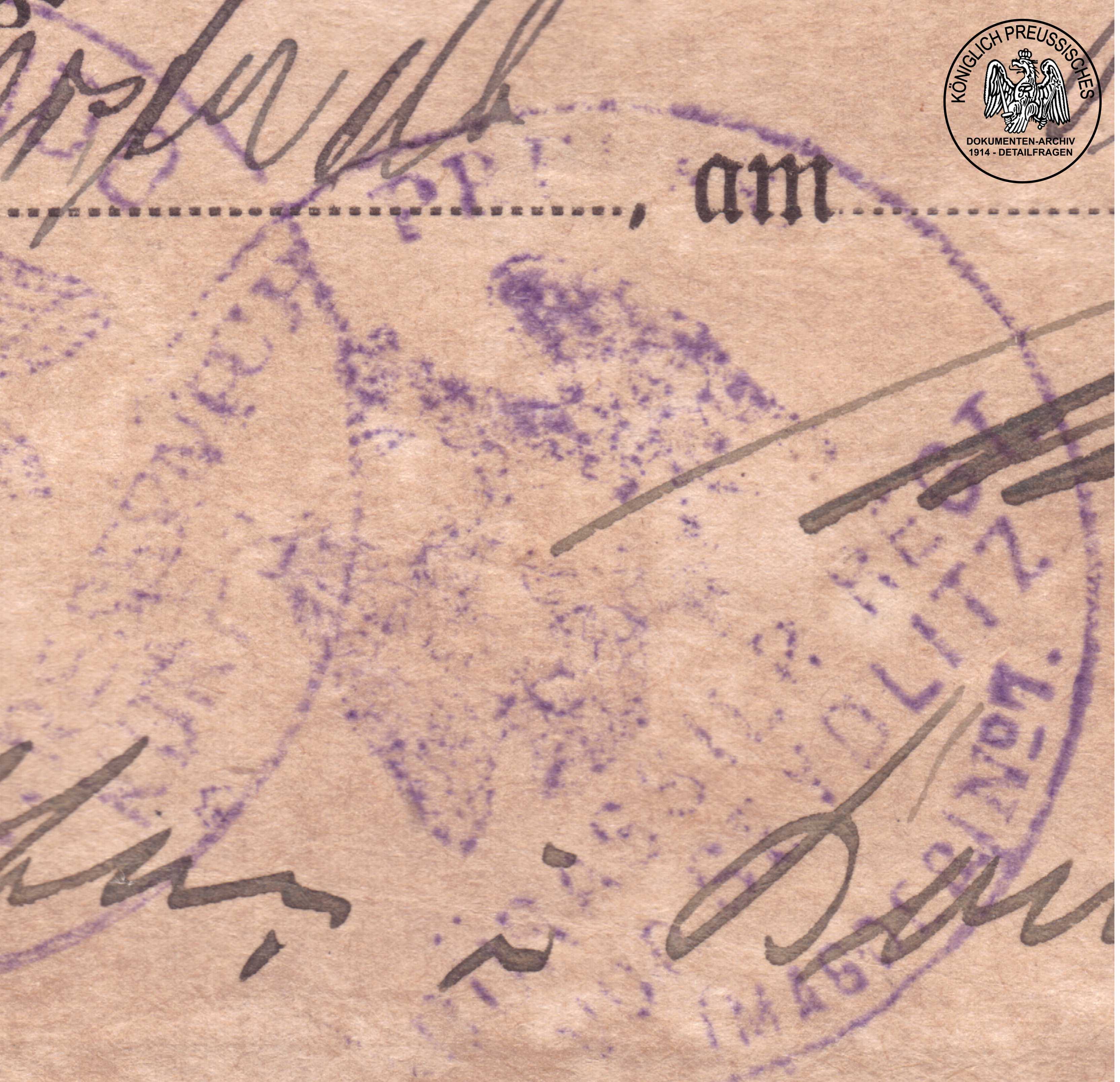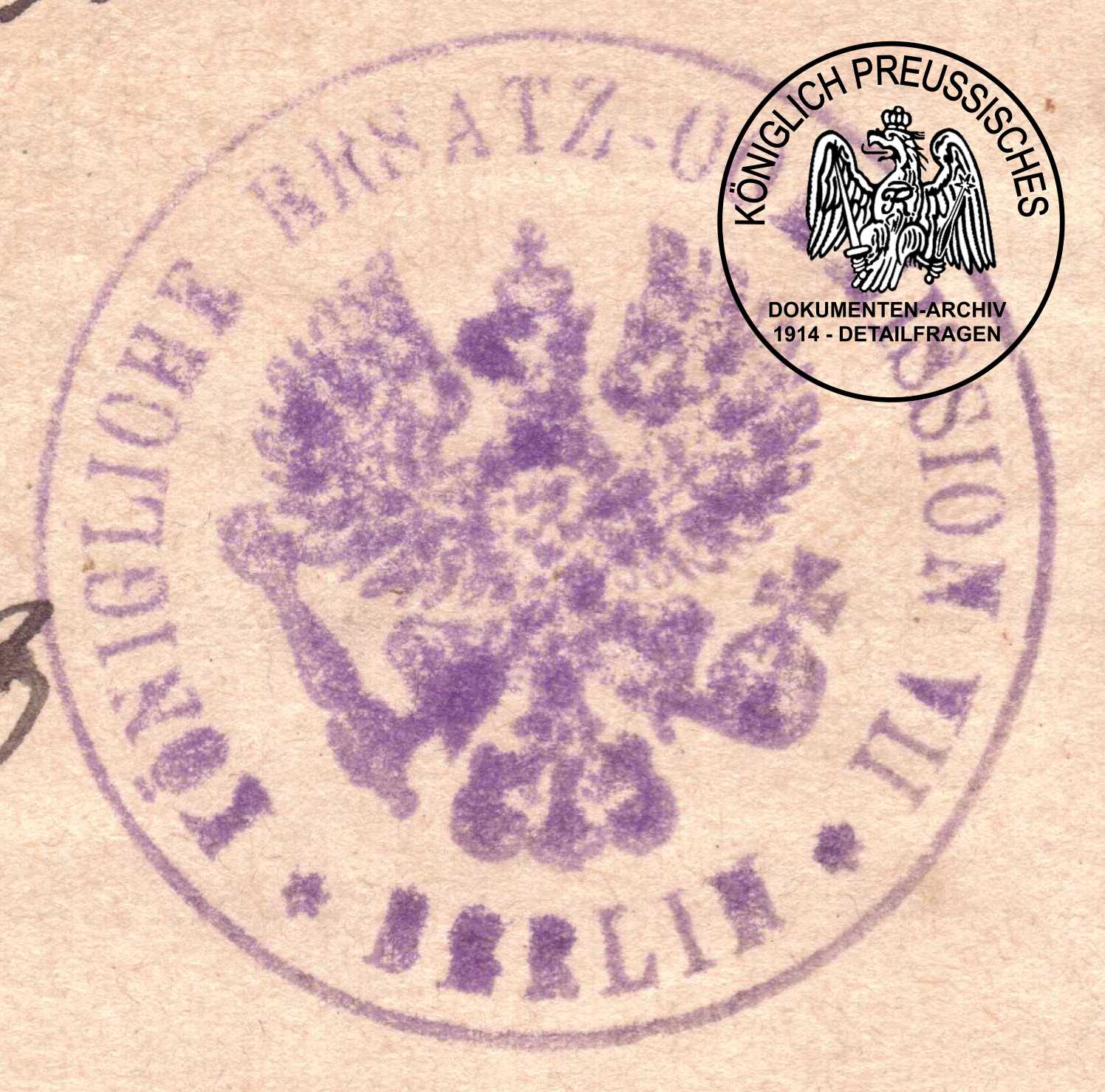 Siegel der Königlich Preussischen Ober- Ersatzkommisionim Bezirk Berlin(aus einem Landsturmschein) |