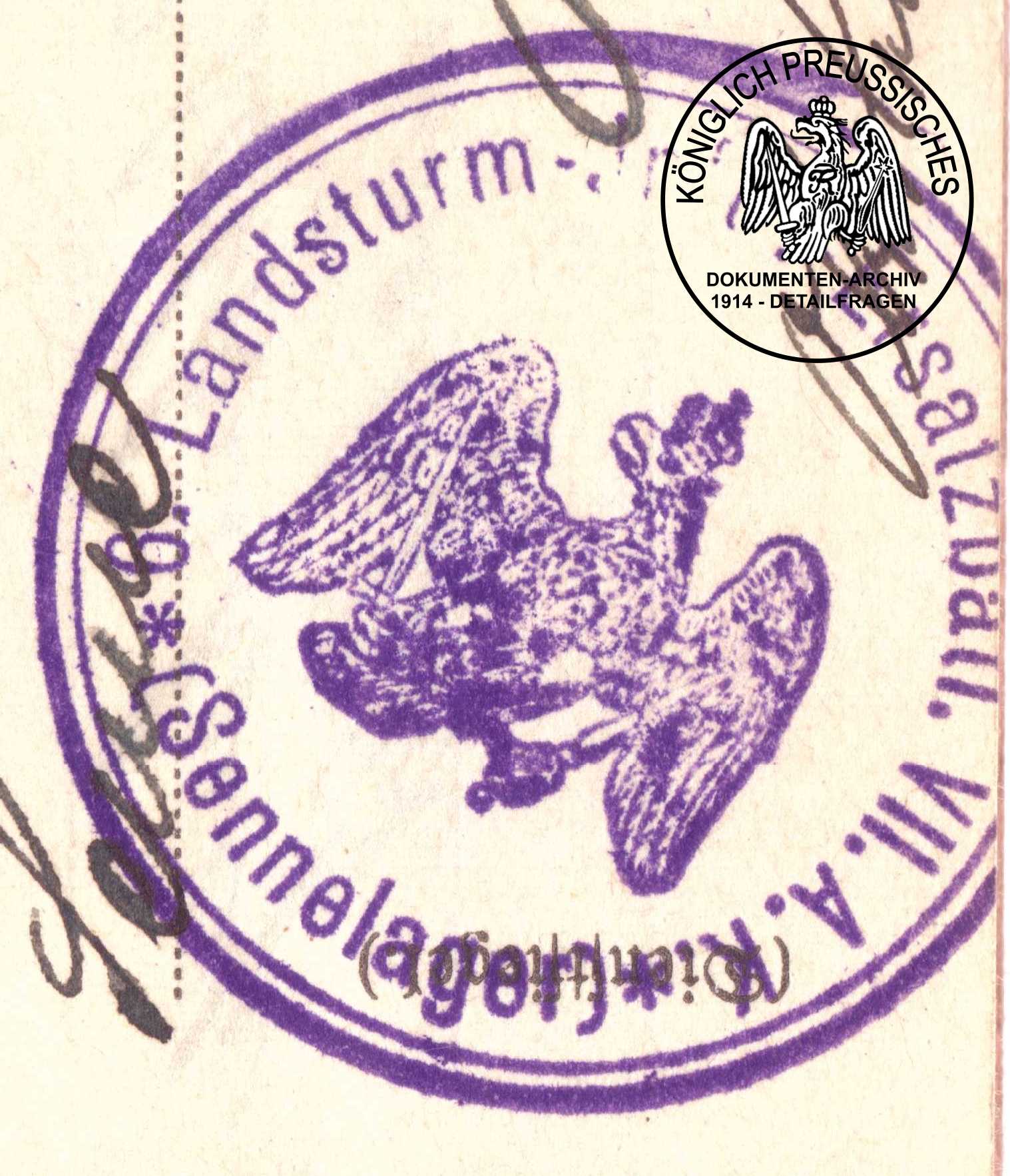 Stempel des Landsturm Ersatzbataillion No 6Sennelager(aus einem Urlaubsschein |