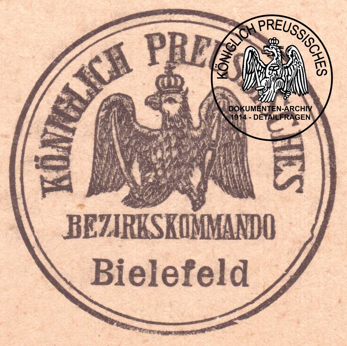 Siegel des Bezirkskommandos BielefeldDas Siegel ist ein Aufdruck auf einer Ladung zur Musterung.(aus einer Ladung zur Musterung) |