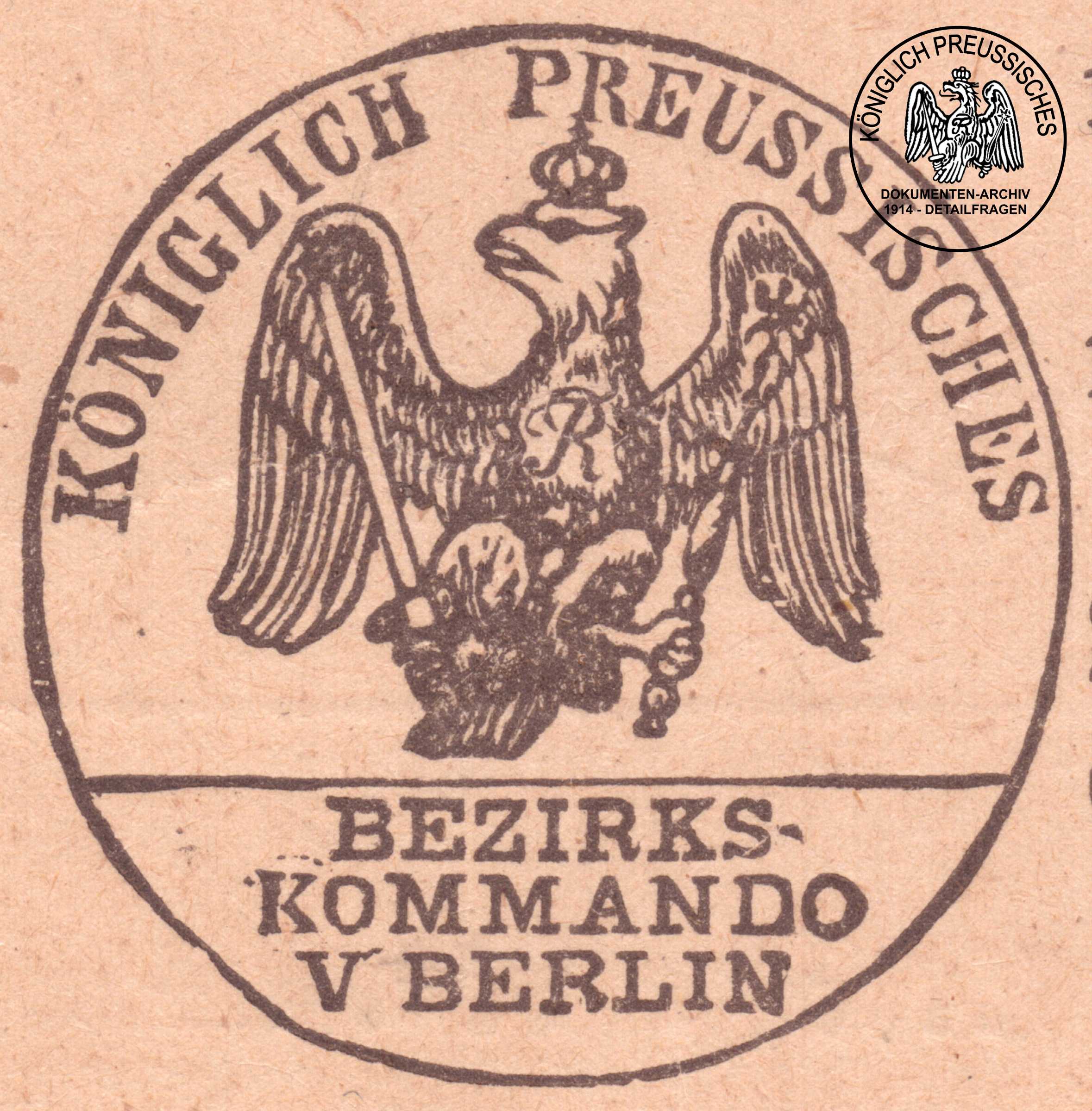 Siegel des Bezirkskommandos V BerlinDas Siegel ist ein Aufdruck auf einer Ladung zur Musterung.(aus einer Ladung zur Musterung) |