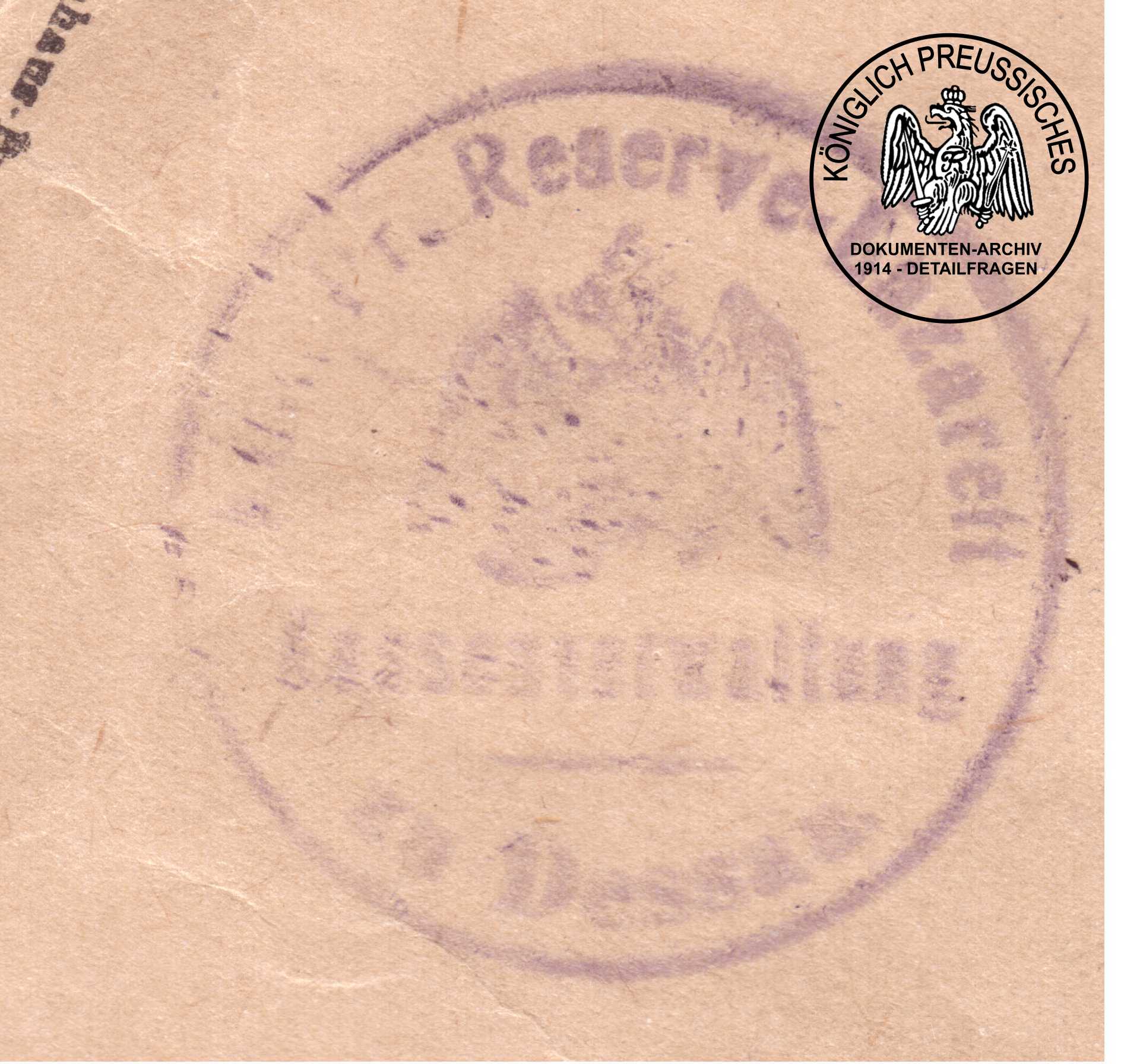 Stempel der Kassenverwaltung des Ersatz Reserve Lazarettes zu Dessau(von einem Verpflegungsausweis) |