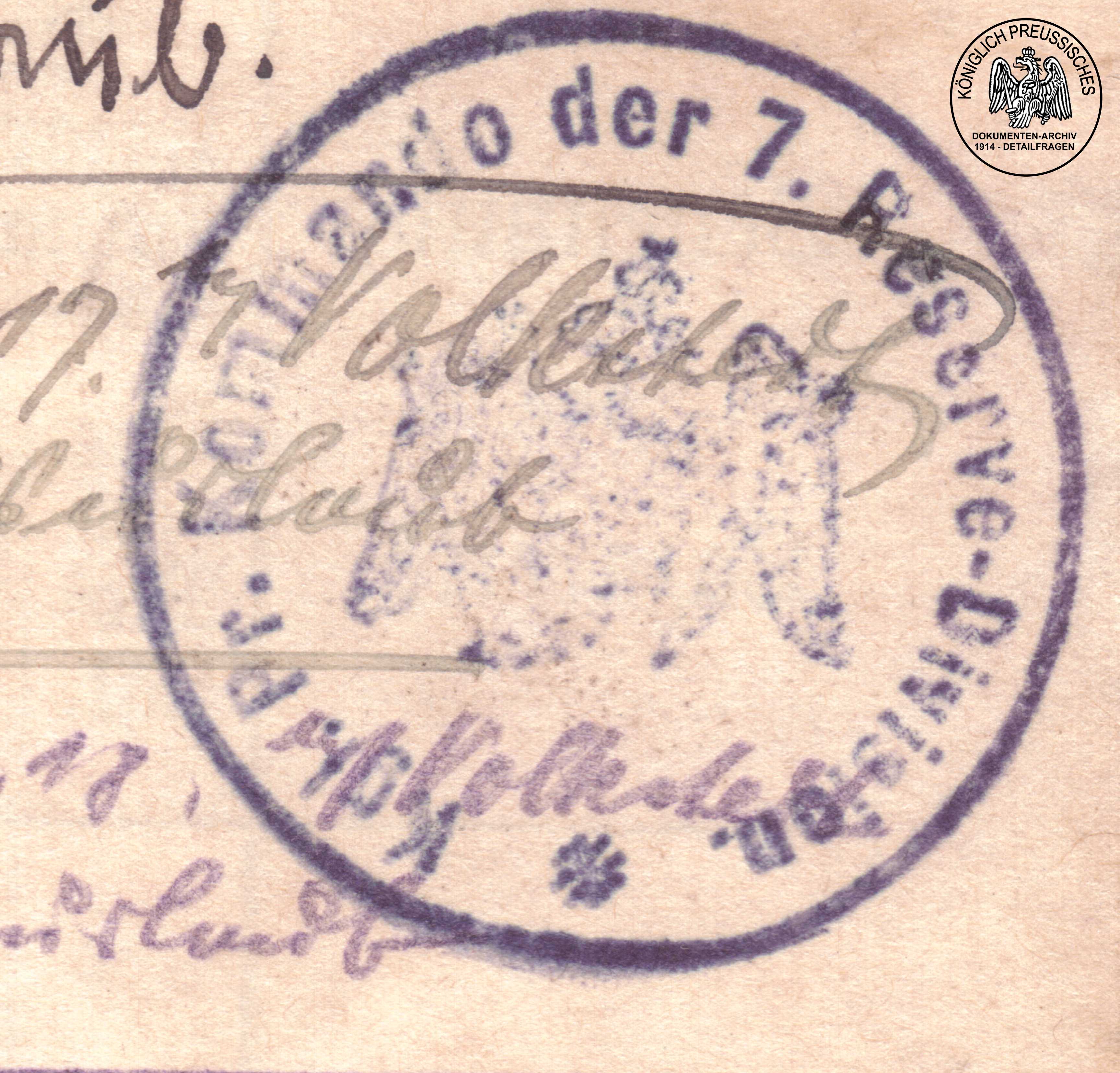 Siegel des Königl. Preussischen Kommandoder 7. Reserve Division(aus einem Soldbuch) |
