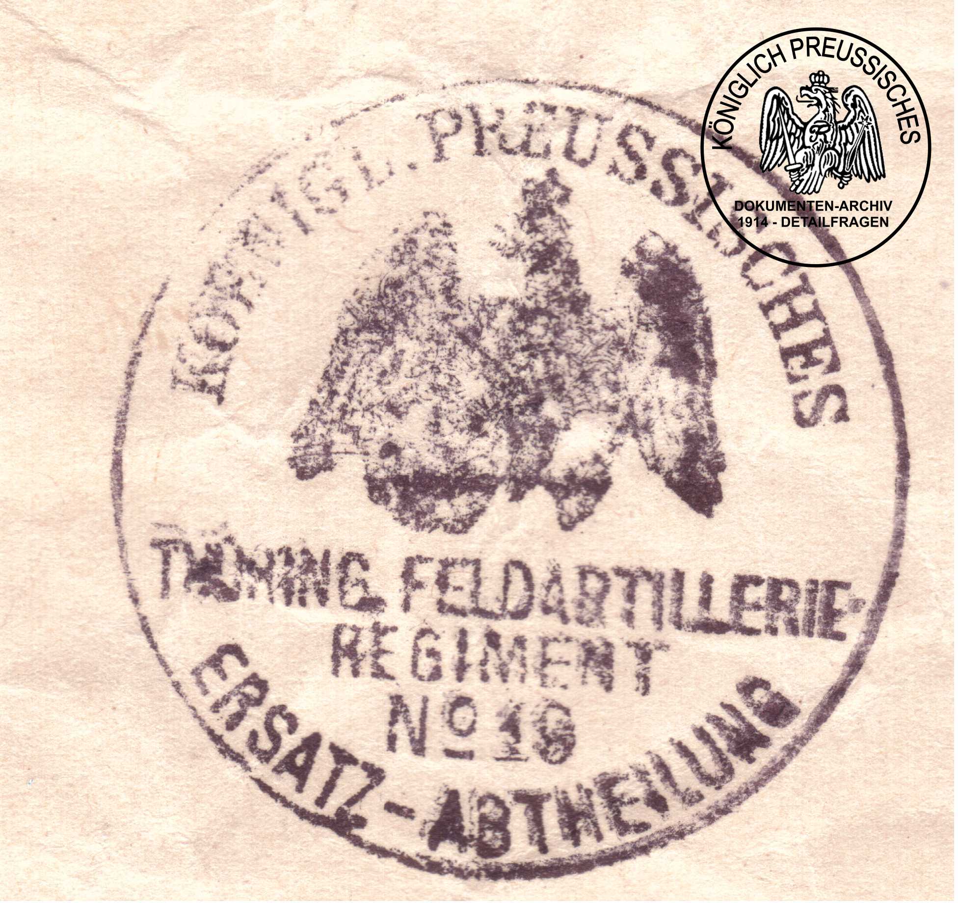 Siegel der Koeniglich Preussischen 1. Thuering. Feldartillerie Regiment No 19Ersatz-Abteilung(aus einem Ausweis zur Stelle als Fahnenjunker) |