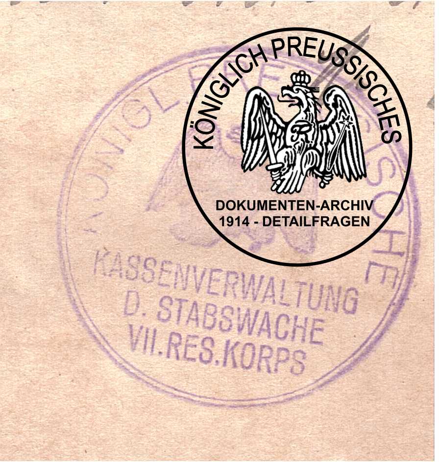 Stempel der Koeniglich Preussische Kassenverwaltung der Stabswache VII Reserve Korps(aus einem Soldbuch) |