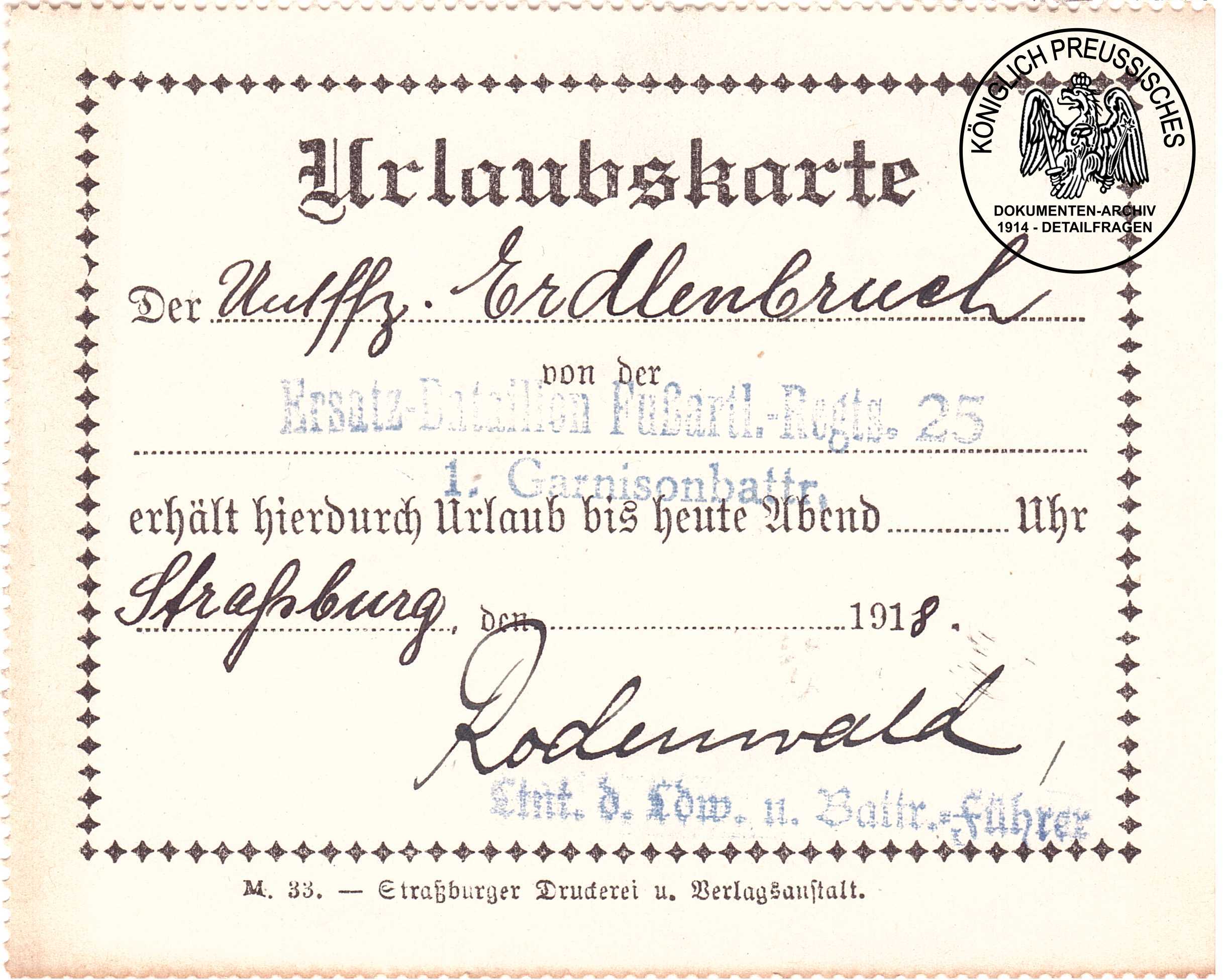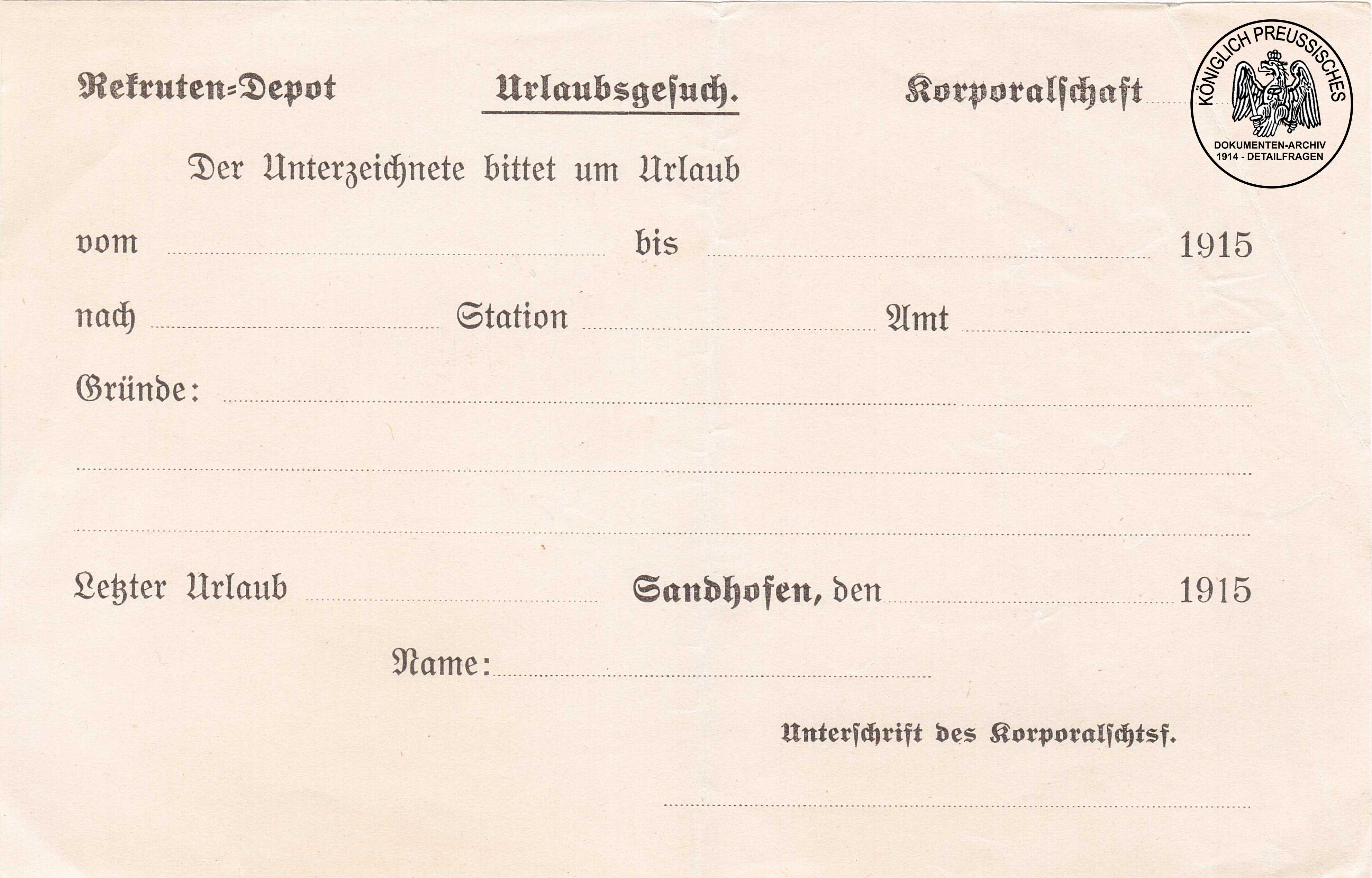 Der Urlaubsschein ist ähnlich dem preussischen Urlaubsschein;