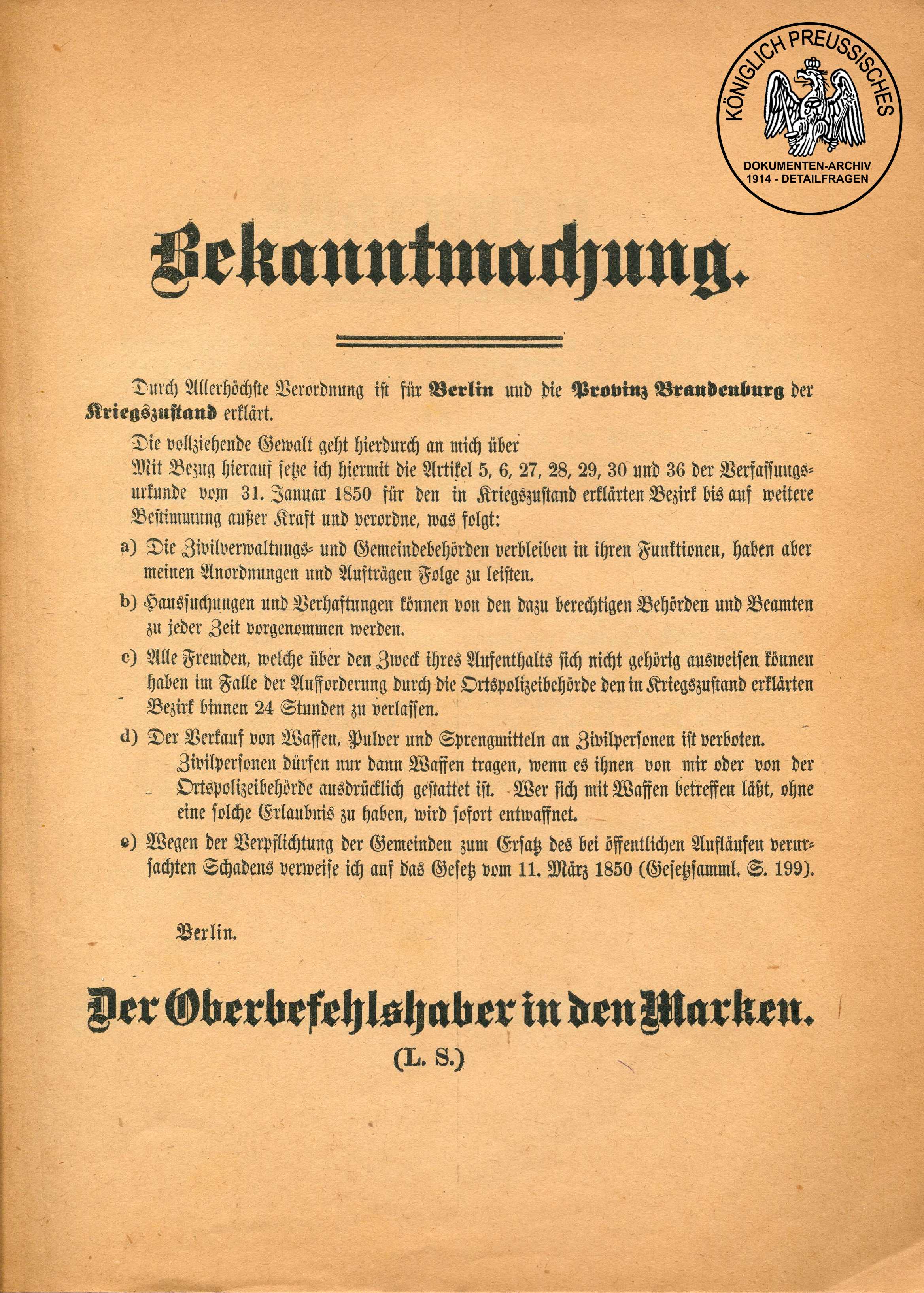 Kgl. Proviantamt in Berlin.