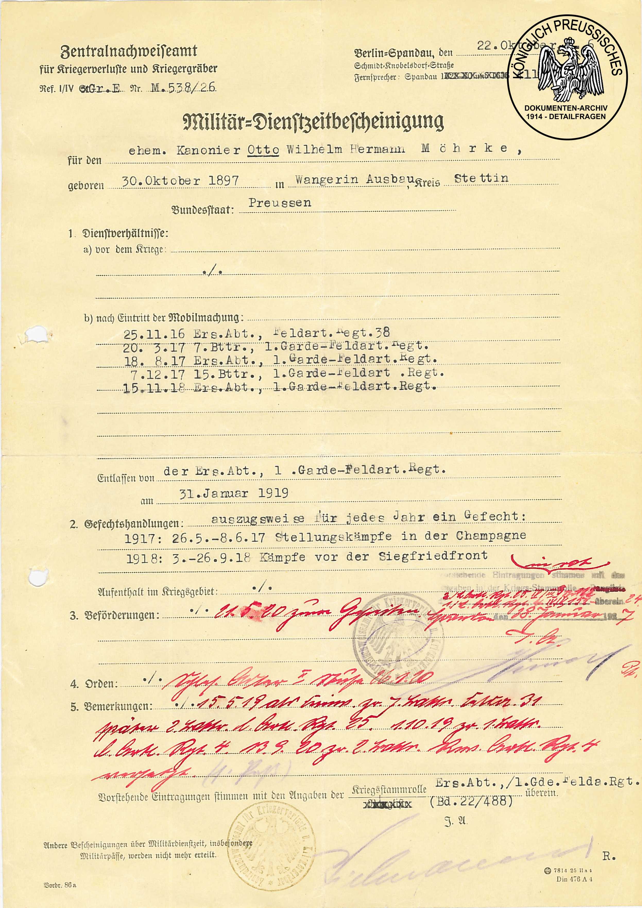 ab dem 17.08.1914 bis Kriegsschluß.