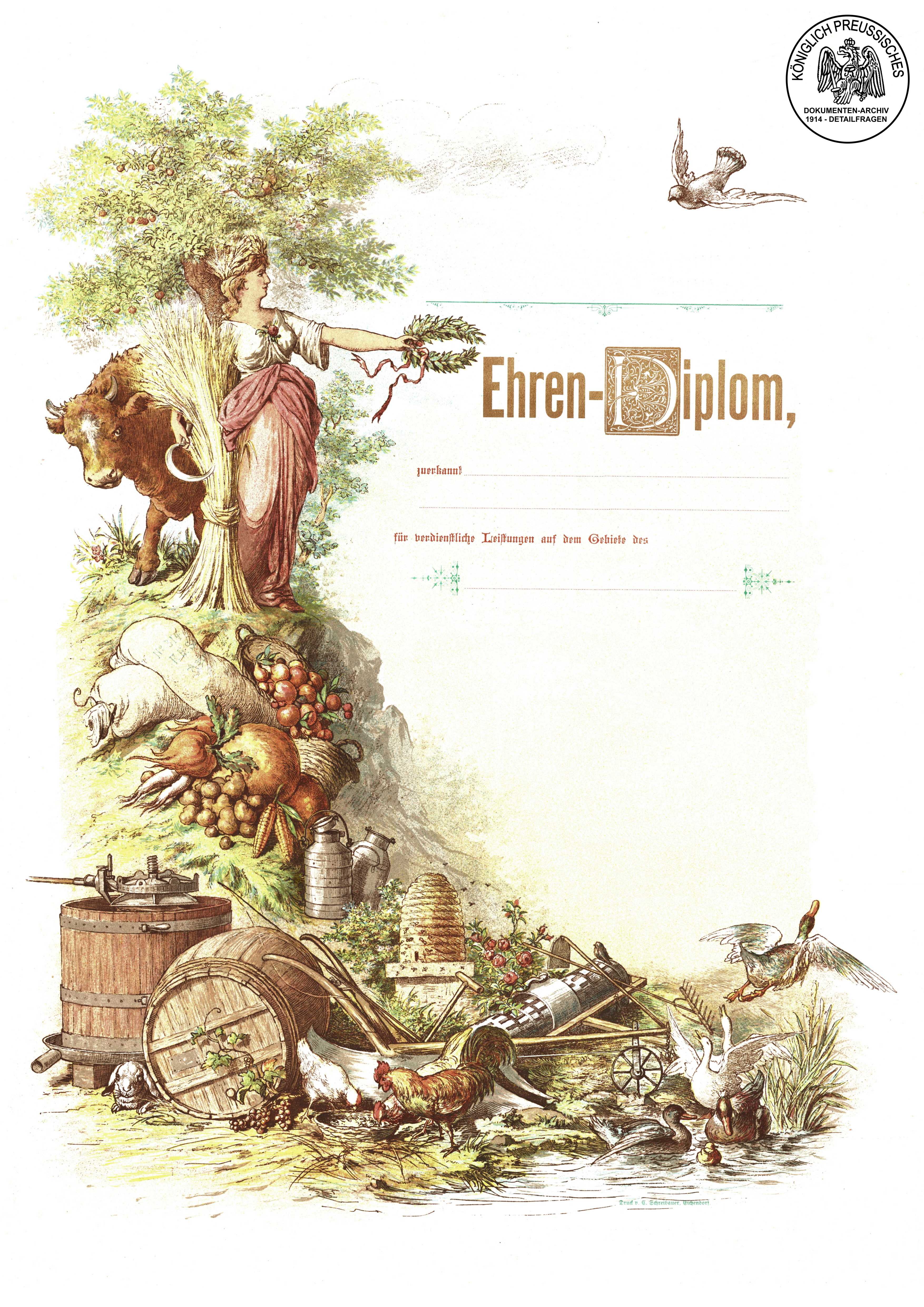 Blanko-Vorlage für ein Ehren-Diplom mit landwirtschaftlichem