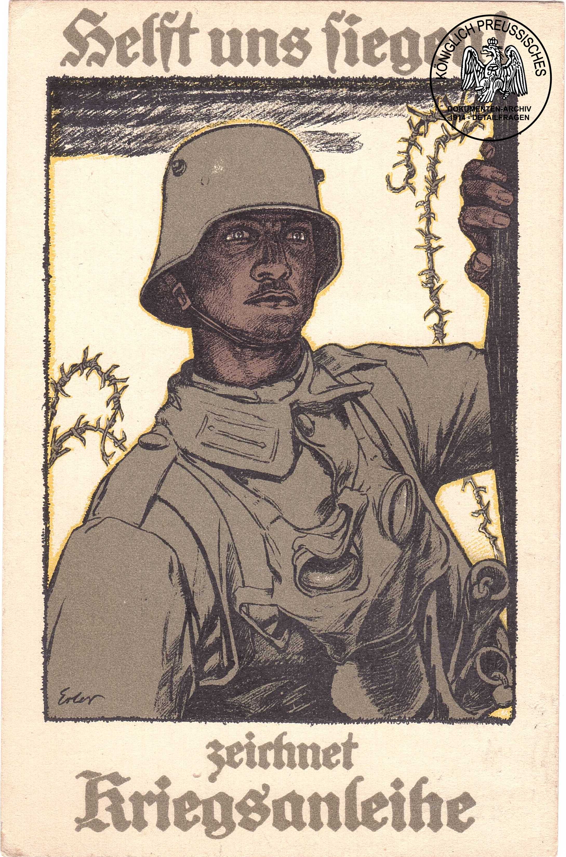 Diese Karte fordert zum Zeichnen von Kriegsanleihen auf,um die Finanzierung des Krieges sicher zu stellen. |