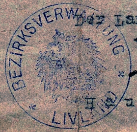 Siegel des kaiserlich deutschen Polizei-Präsidenten Lodz(aus einem Entlausungsauweis) |