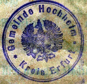 Siegek der Gemeinde Hochheim; Kr. Erfurt(aus einem Brotkartenabmeldeschein) |