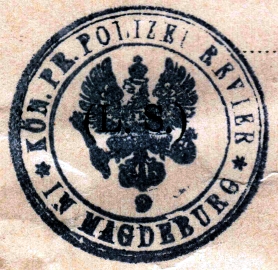 Siegel des 9ten Polizeirevier der Stadt Magdeburg(aus einem Brotkartenabmeldeschein) |
