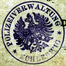 Siegel des Polizeiverwaltung Schleswig.(aus einer Radfahrkarte) |