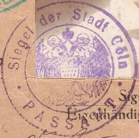 Siegel des Paßamtes der Stadtverwaltung Cöln(aus einem Ausweis) |